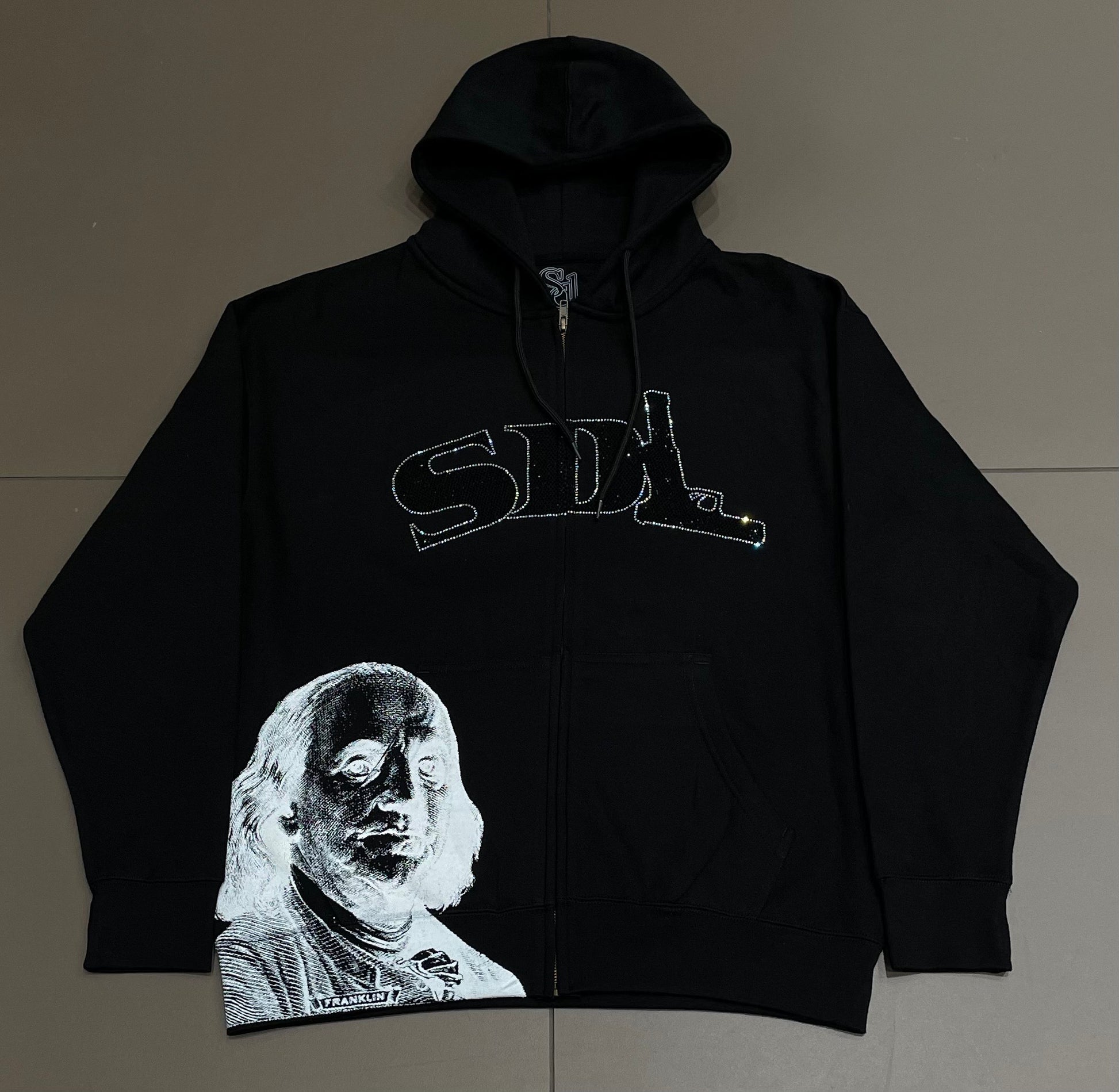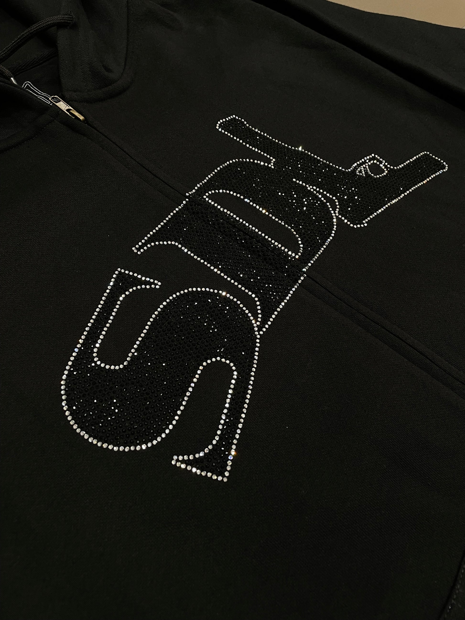 Black/White Virgin SDL Rhinestone Zipup