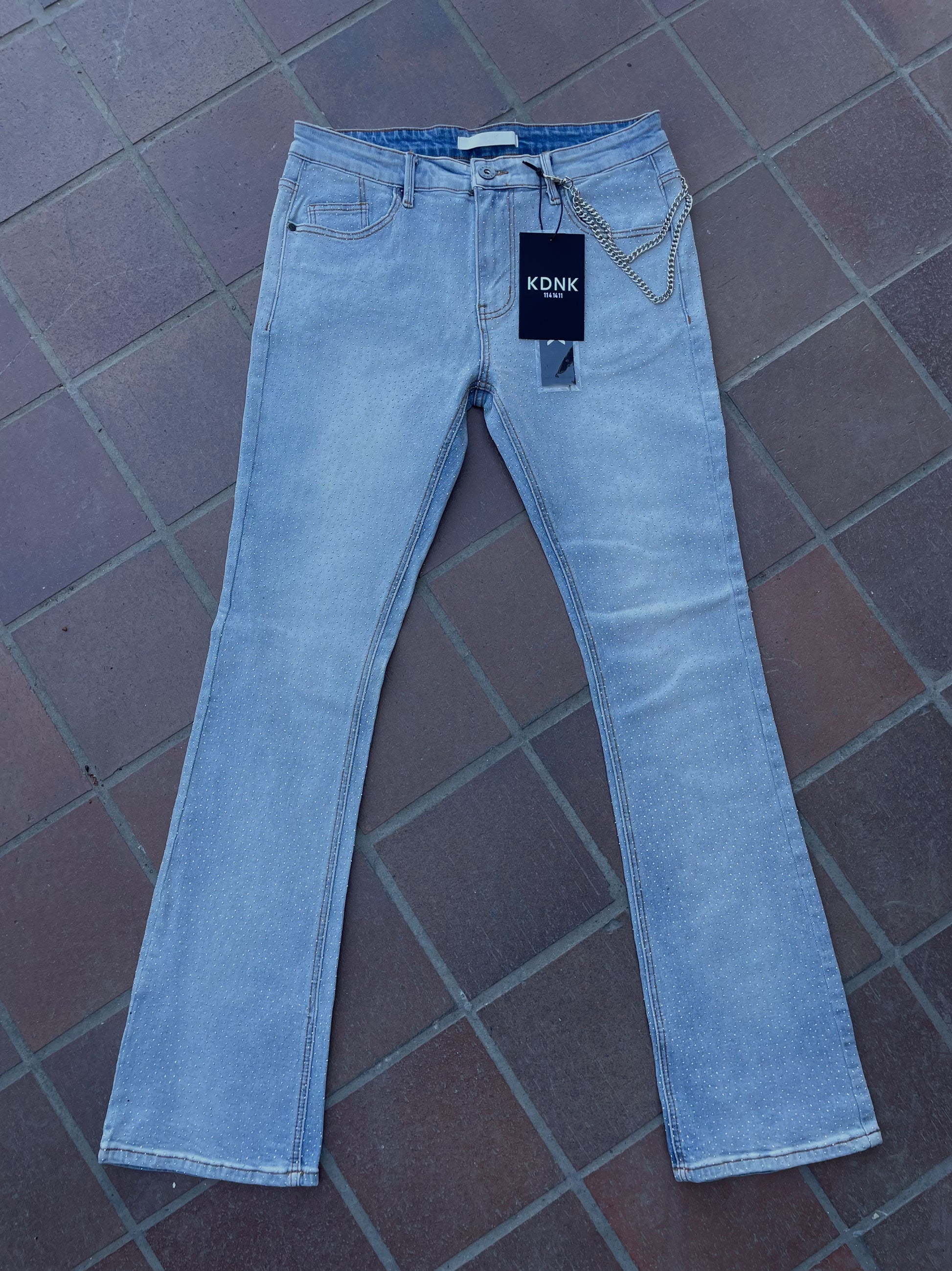 Blue KDNK Skinny Rhinestone Flare Jeans